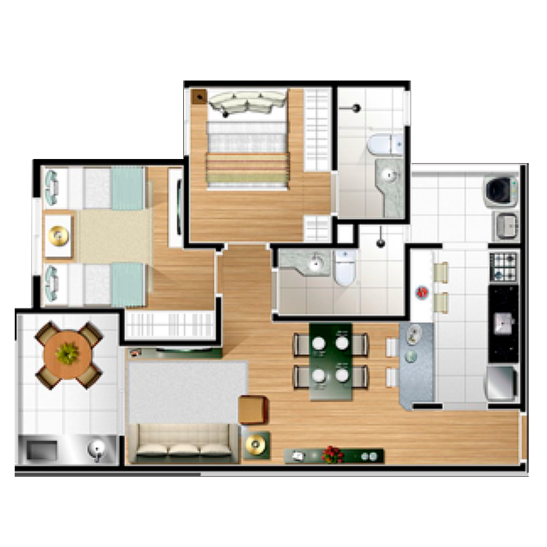 Os apartamentos são entregues com revestimento e piso (porcelanato) nas áreas frias, como banheiros, cozinha e área de serviço, e contrapiso nos demais ambientes. As unidades já incluem portas, torneiras, pias de granito, tanques, vasos sanitários e demais louças. Em alguns empreendimentos, oferecemos ainda mais benefícios, como pisos completos em todos os ambientes.